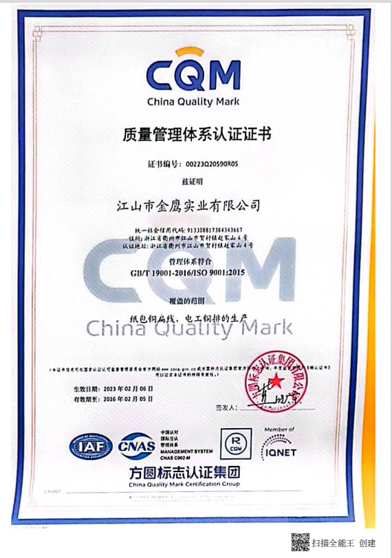 江山市金鷹實(shí)業(yè)有限公司,地處江山市賀村工業(yè)園區(qū)趙家山4-1號(hào),占地面積18000M2,建筑面積約15000 M2。原主要生產(chǎn)、銷(xiāo)售“金鷹、金盾、JYD”系列地彈簧產(chǎn)品,是國(guó)內(nèi)唯一二次參與制訂地彈簧國(guó)家標(biāo)準(zhǔn)的專(zhuān)業(yè)生產(chǎn)廠。企業(yè)曾榮獲“省級(jí)先進(jìn)企業(yè)、文明單位”等殊榮。所生產(chǎn)的系列地彈簧產(chǎn)品,被國(guó)家及省有關(guān)部門(mén)評(píng)定為“省優(yōu)產(chǎn)品、質(zhì)量信得過(guò)放心產(chǎn)品、高標(biāo)準(zhǔn)嚴(yán)要求制造產(chǎn)品”等稱(chēng)號(hào)。并于2002年通過(guò)了“ISO9002方圓質(zhì)量體系認(rèn)證”。隨著國(guó)內(nèi)用電水平的不斷提高及高低壓電網(wǎng)改造的需要,公司及時(shí)捕捉市場(chǎng)對(duì)電工銅排和紙包繞組銅扁線需求的機(jī)遇。通過(guò)自籌資金,改建廠房,新購(gòu)成套先進(jìn)生產(chǎn)、檢測(cè)設(shè)備。建成了目前國(guó)內(nèi)自動(dòng)化程度最高,加工精度最優(yōu)的電工銅排和紙包繞組銅扁線生產(chǎn)線。